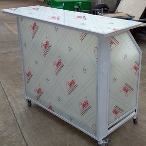 A completely equipped portable cocktail bar brilliantly designed to set up and tear down effortlessly in minutes. Its constructed of unbreakable high impact panels and lightweight but sturdy metal available in different colors. It features plenty of counter space, 2 ice bins, 2 washable cutting boards, shelving, speed well,The easily removable panels can be customized with logos, slogans, images and more, providing operators with added revenue opportunities.